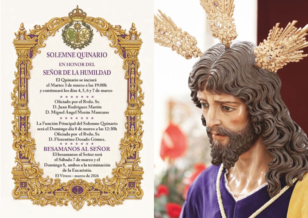 La Parroquia Beato Marcelo Spínola de Cáceres se prepara para vivir uno de los momentos centrales del calendario cuaresmal con la celebración del Solemne Quinario en honor de Nuestro Padre Jesús de la Humildad, que se desarrollará del 3 al 7 de marzo, con eucaristía diaria a las 19:00 horas.