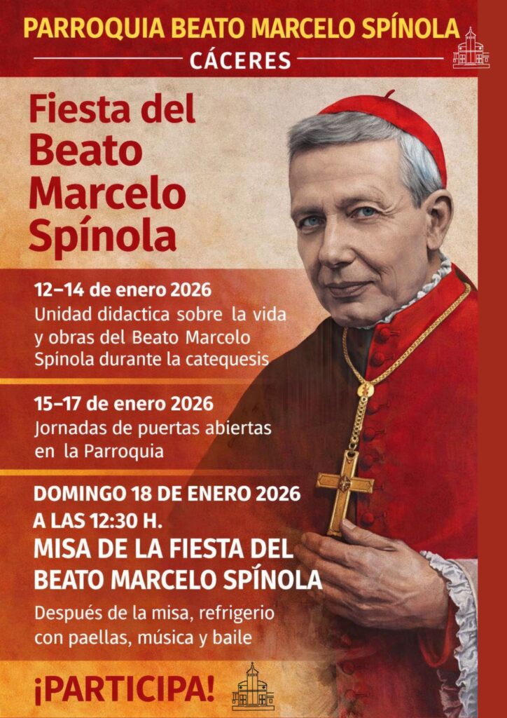 La Parroquia Beato Marcelo Spínola de Cáceres vivirá durante el mes de enero de 2026 sus fiestas patronales con un programa que combina catequesis, apertura a los vecinos y celebración festiva, en un clima de encuentro y participación.
