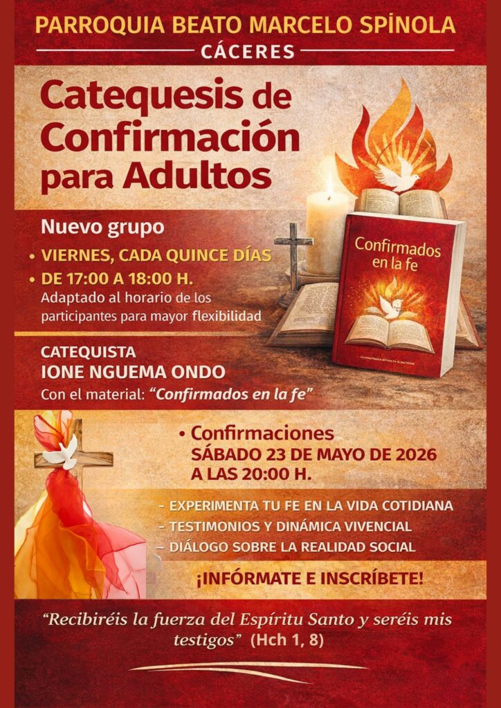 El nuevo grupo estará acompañado por la catequista Ione Nguema Ondo, quien guiará el proceso formativo utilizando el material oficial de la Conferencia Episcopal Española, titulado “Confirmados en la fe”. Se trata de un itinerario pensado para el mundo adulto, que huye de un enfoque meramente teórico para centrarse en una dinámica vivencial, con testimonios, diálogo y lectura creyente de la realidad social.